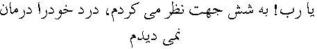 Yâ Rab! Tevekkülsüz, gafletle, iktidar ve ihtiyarıma dayanıp derdime derman aramak için cihât-ı sitte denilen altı cihette nazar gezdirdim. Maatteessüf derdime derman bulamadım. Mânen bana denildi ki: "Yetmez mi dert, derman sana."