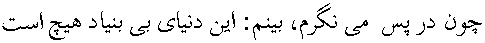 Bırak feryadı, şükür kıl manend-i belâbil, demâ keyfinden güler hep gül mül.Ger bulmazsan, bütün dünya cefâ-ender, fenâ ender hebâdır, bil.