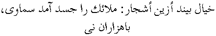 Hayal ise görüyor: Güya şu ağaçların müekkel melâikeleri içlerine girip herbir dalında çok neyler takılan ağaçları ceset olarak giymişler. Güya Sultan-ı Sermedî, binler ney sadâsıyla muhteşem bir resm-i küşatta onlara onları giydirmiş ki, o ağaçlar câmid, şuursuz cisim gibi değil, belki gayet şuurkârâne, mânidar vaziyetleri gösteriyorlar.