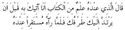 Hem meselâ, Hazret-i Süleyman Aleyhisselâm taht-ı Belkıs'ı yanına celb etmek için vezirlerinden bir âlim-i ilm-i celp dedi, "Gözünüzü açıp kapayıncaya kadar sizin yanınızda o tahtı hazır ederim" olan hadise-i harikaya delâlet eden şu âyet: