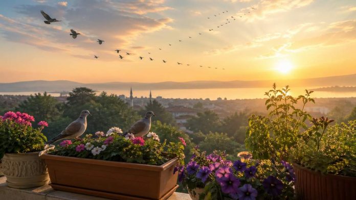 Şu fani ömrümde bir sabah vakti daha yaşıyorum. Balkona çıktım. Çok sevdiğim çiçeklerimi suluyor, sararmış yapraklarını ayıklıyor, bakımlarını yapıyorum. Gün doğarken esen bu sabah yeli ile kuşların sesleri de kulaklarıma geliyor. İçimden “mesai birazdan başlar” diyorum.